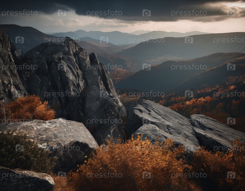 Красивый кинематографический горный пейзаж с черным мрамором и гранитом