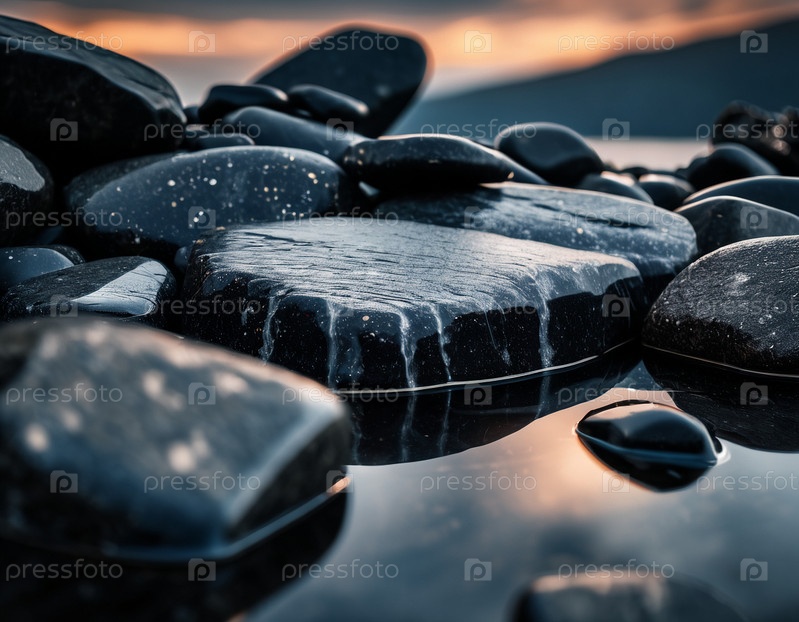 Красивый кинематографический горный пейзаж с черным мрамором и гранитом