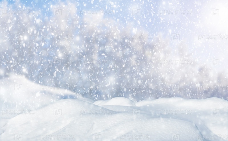 Зимний снежный фон. Снегопад на фоне леса и сугробов