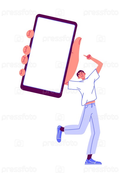 Счастливый человек с пустым экраном смартфона мобильного телефона