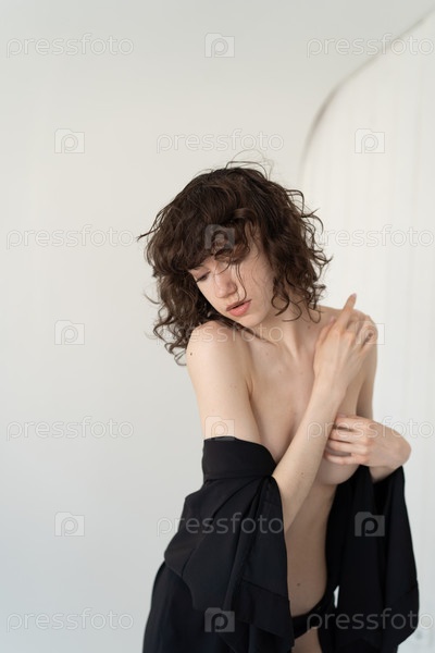 Портрет молодой красивой женщины с вьющимися волосами в студии