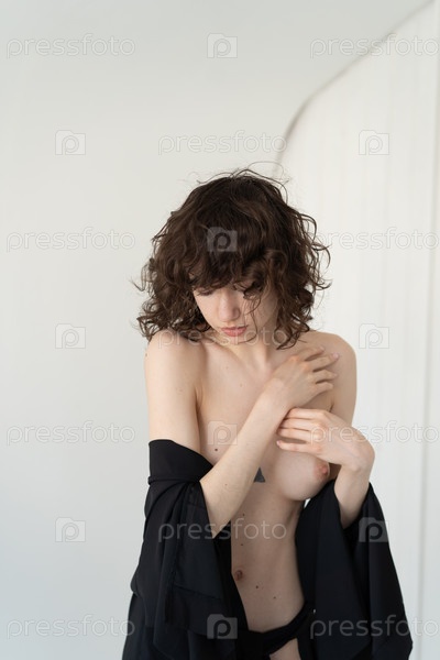 Портрет молодой красивой женщины с вьющимися волосами в студии