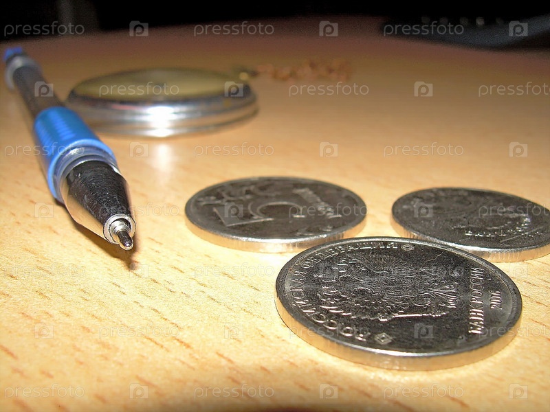 Российские монеты, часы, авторучка