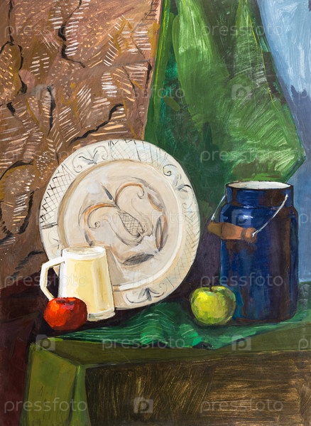 Нарисованный от руки натюрморт с тарелкой и лейкой