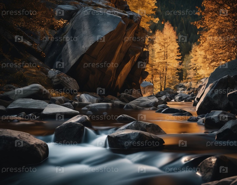 Красивый кинематографический горный пейзаж с черным мрамором и гранитом