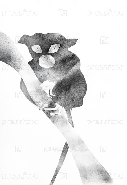 Лемур на ветке дерева, нарисованный вручную