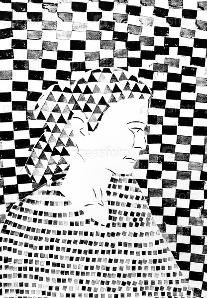 Портрет женщины, нарисованный вручную в клетчатом узоре