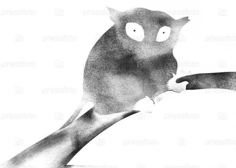 Один лемур на ветке дерева, нарисованный вручную