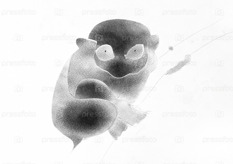 Детеныш лемура на бамбуке, нарисованный вручную крупным планом
