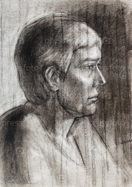 Учебный портрет мужчины, нарисованный углем