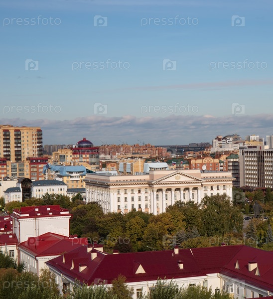 Прекрасный вид на город с высоты Цветного бульвара Тюмени осенью