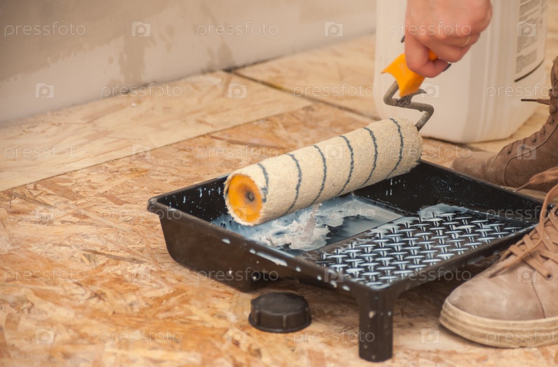 В процессе грунтования валик и емкость для закрепления краски или наносимого элемента