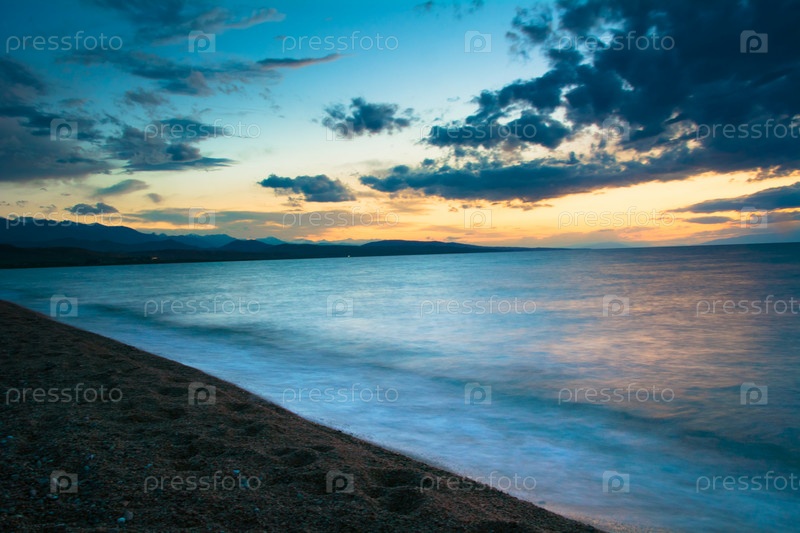 Закат на озере Иссык-Куль, длительная выдержка