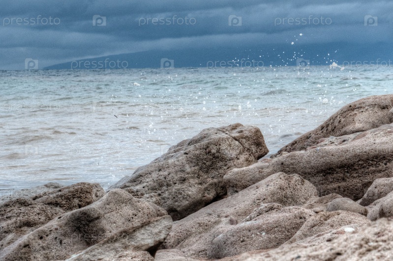 Штормовые волны на озере Иссык-Куль, грязная, но красивая вода. избирательный фокус