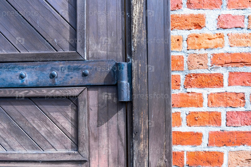 Средневековая кирпичная стена с деревянными дверями