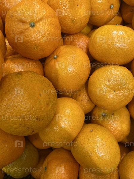 В коробке сока много мандаринов, спелых, желтых, сладких