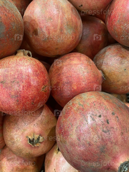 В коробке сока много гранатов, спелых, красных, сладких, вкусных