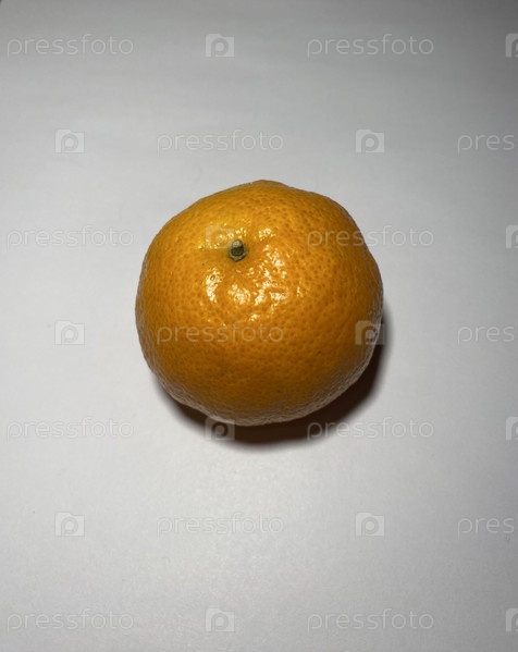 Один сладкий вкусный сочный мандарин лежит на белом фоне