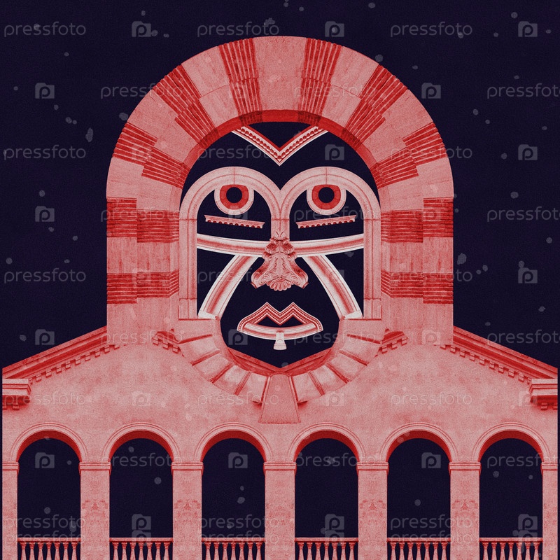 Художественный постер, концепция, обложка журнала. Сюрреалистический коллаж с элементами классической архитектуры. Античный городской пейзаж