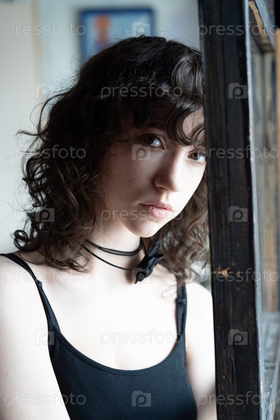 Портрет молодой красивой женщины с вьющимися волосами в студии