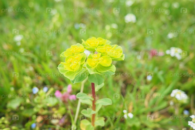 Молочай, цветущее растение, молочай, Euphorbiaceae. Млечный чай пилчатый, молочный Тинтерн зубчатый, молочный пилообразный прямостоячий. Многолетняя трава. На концах ветвей расположены соцветия мелких цветов