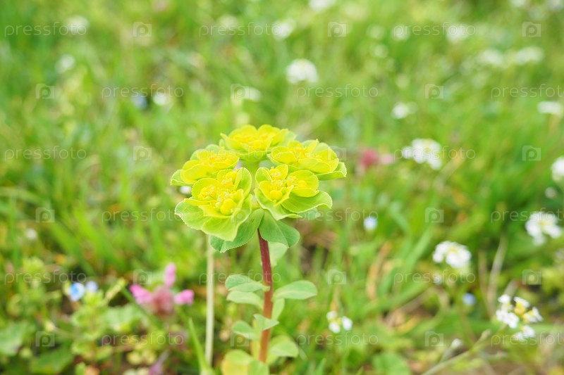 Молочай, цветущее растение, молочай, Euphorbiaceae. Млечный чай пилчатый, молочный Тинтерн зубчатый, молочный пилообразный прямостоячий. Многолетняя трава. На концах ветвей расположены соцветия мелких цветов