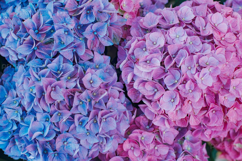 Розовые и фиолетовые соцветия гортензии крупным планом