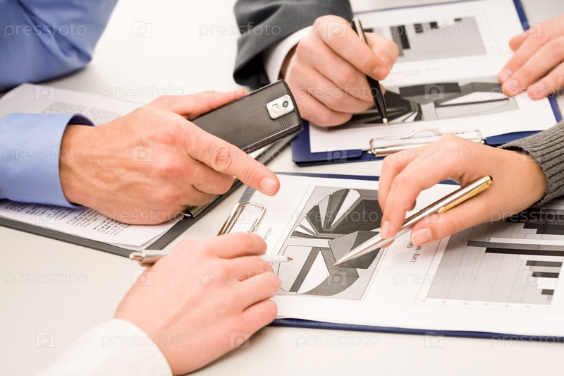 Фото рук деловых людей, работающих с документами на брифинге