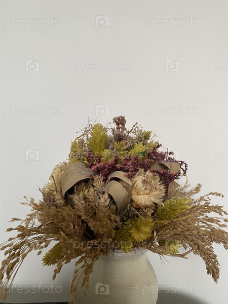 Букет из засушенных полевых цветов в вазе