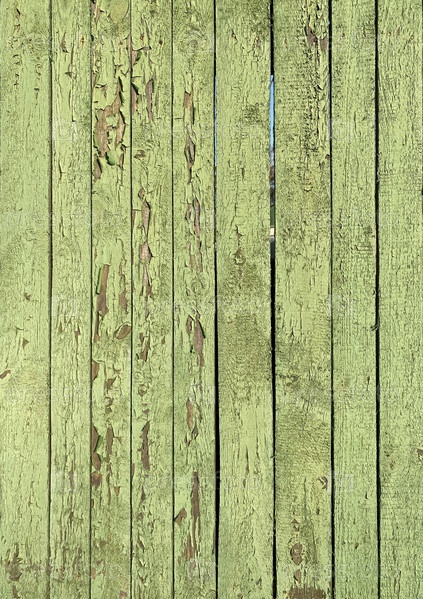 Зеленый забор из деревянных досок. Облупившаяся краска, запустение, фон