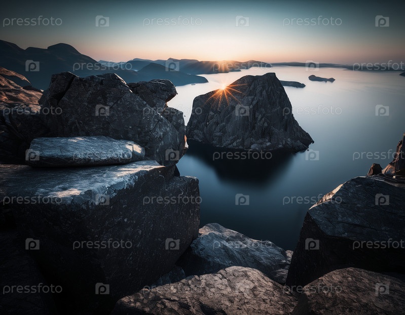 Красивый кинематографический горный пейзаж с черным мрамором и гранитом
