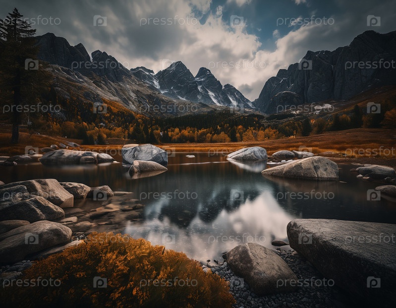 Красивый кинематографический горный пейзаж с черным мрамором и гранитом