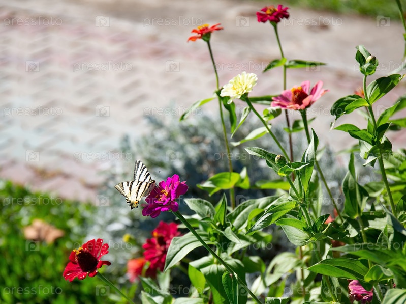 Красивая бабочка на красивом цветке в старом парке летом
