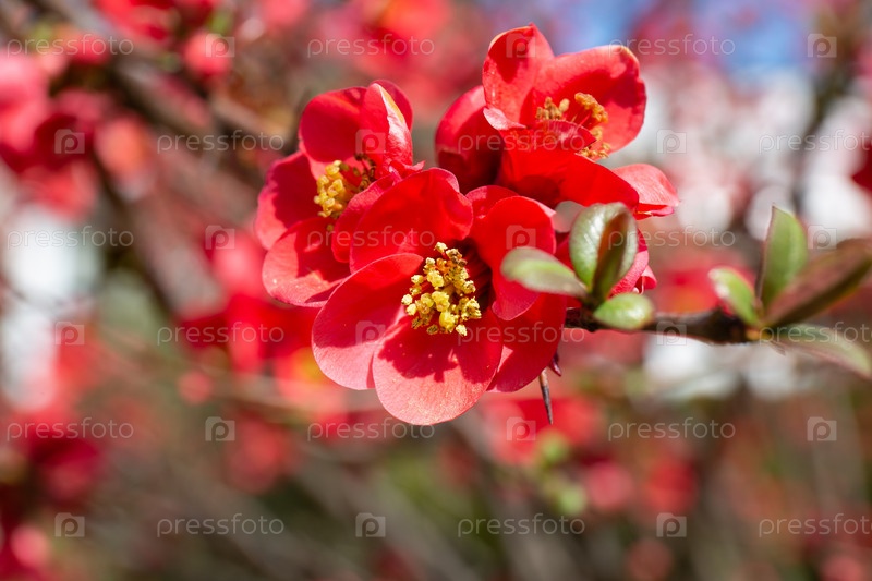 В Крыму распускаются первые красивые весенние цветы.Айва прекрасная
