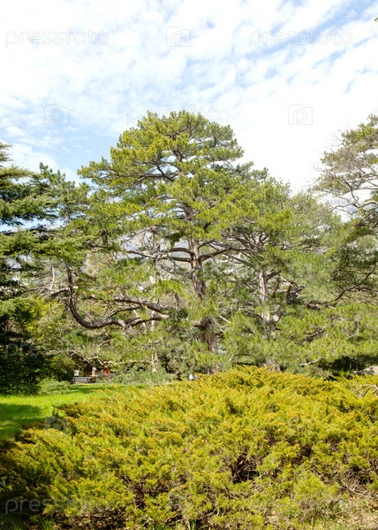 Красивые деревья весной на южном берегу Крыма в Ялте