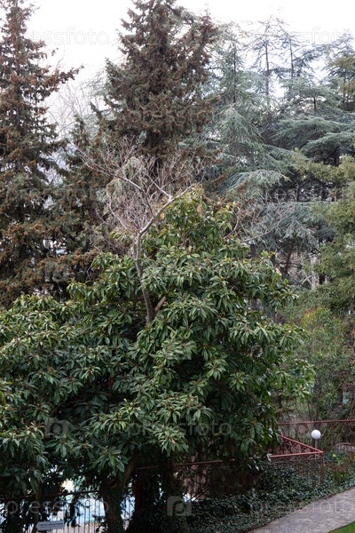 Красивые деревья весной на южном берегу Крыма в Ялте