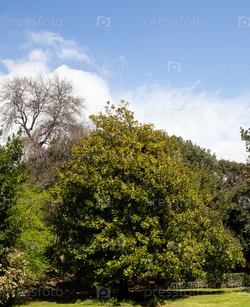 Красивые деревья весной на южном берегу Крыма в Ялте