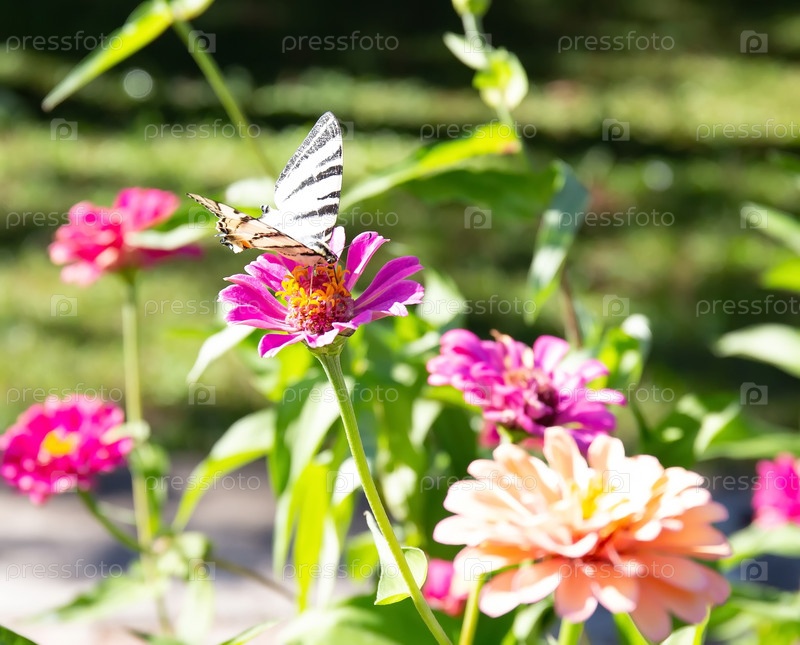 Красивая бабочка на красивом цветке в старом парке летом