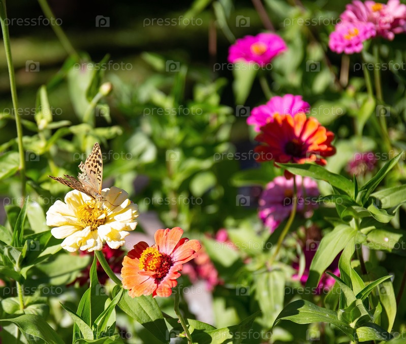 Красивая бабочка на красивом цветке в старом парке летом