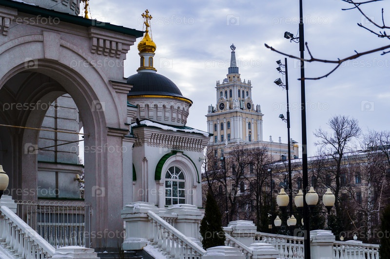Башня управления ЮВЖД на фоне Благовещенского кафедрального собора. Воронеж