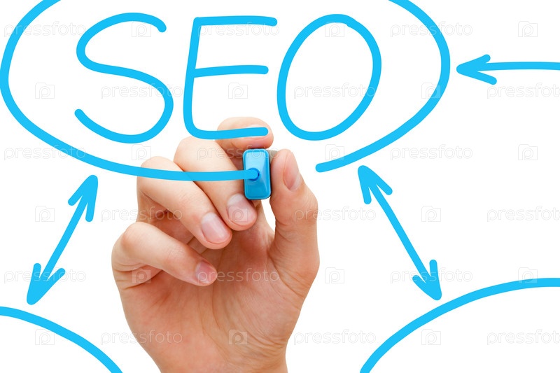 Схема SEO с синим маркером