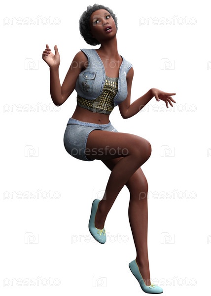 3D Черная девушка в джинсовых шортах