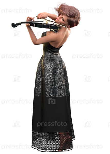 3D Женщина в черном платье играет на скрипке