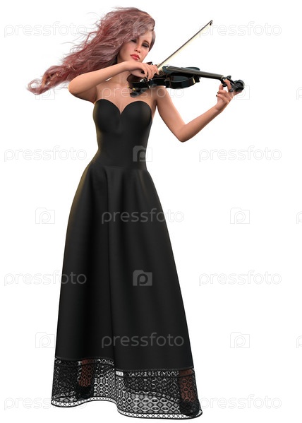 3D Женщина в черном платье играет на скрипке