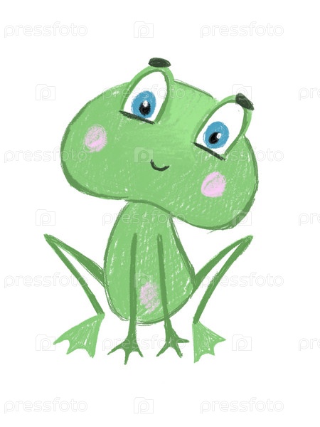 Милая зеленая лягушка в мультяшном стиле, нарисованная вручную иллюстрация, изолированная на белом фоне