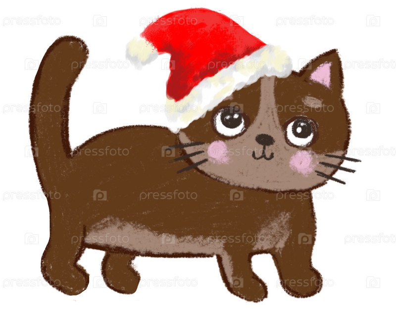 Коричневый кот в рождественской шапке