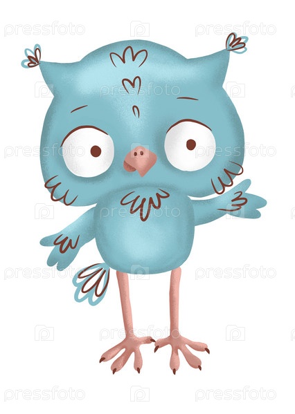 Милая синяя сова, милый мультяшный клипарт совы, нарисованные от руки цифровые цвета, красочная яркая иллюстрация, выделенная на белом фоне,