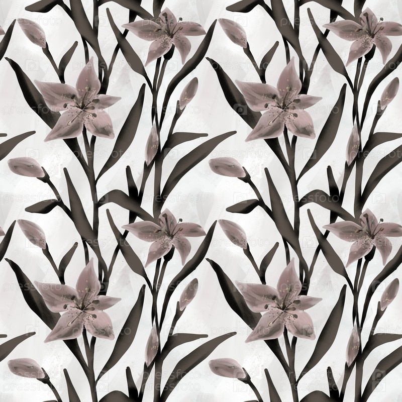 Бесшовный узор с лилиями