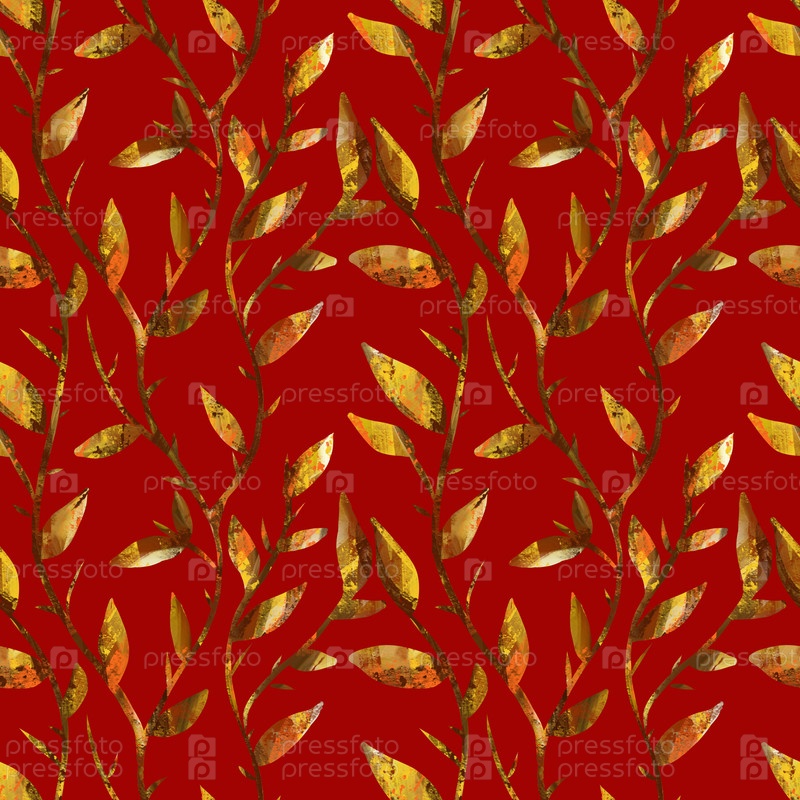 Бесшовный узор с золотыми ветвями и листьями, красивый абстрактный красочный рисунок ручной работы, узор в стиле модерн, рисунок вручную