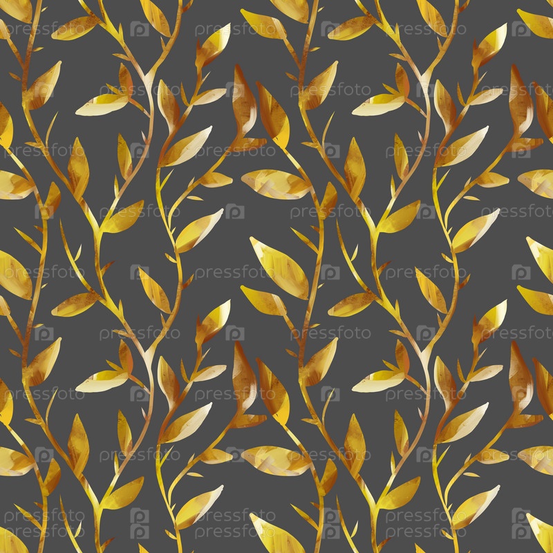 Бесшовный узор с золотыми ветвями и листьями, красивый абстрактный красочный рисунок ручной работы, узор в стиле модерн, рисунок вручную